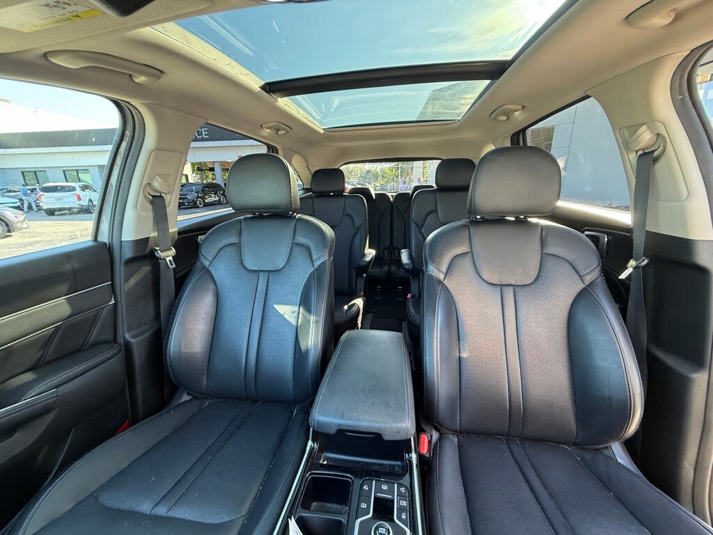 3.316 Axle Ratio, 3rd row seats: split-bench, 4-Wheel Disc Brakes, 6 Speakers, ABS brakes, Air Conditioning, Alloy wheels, AM/FM radio: SiriusXM, Apple CarPlay & Android Auto, Auto High-beam Headlights, Auto-dimming Rear-View mirror, Automatic temperature control, Brake assist, Bumpers: body-color, Carpet Floor Mats, Delay-off headlights, Driver door bin, Driver vanity mirror, Dual front impact airbags, Dual front side impact airbags, Electronic Stability Control, Emergency communication system, Exterior Parking Camera Rear, Four wheel independent suspension, Front anti-roll bar, Front Bucket Seats, Front Center Armrest, Front dual zone A/C, Front fog lights, Front reading lights, Fully automatic headlights, Heated door mirrors, Heated Front Bucket Seats, Heated front seats, Illuminated entry, Knee airbag, Leather steering wheel, Low tire pressure warning, Navigation System, Occupant sensing airbag, Outside temperature display, Overhead airbag, Overhead console, Panic alarm, Passenger door bin, Passenger vanity mirror, Power door mirrors, Power driver seat, Power Liftgate, Power moonroof, Power passenger seat, Power steering, Power windows, Radio data system, Radio: AM/FM Audio System, Rain sensing wipers, Rear air conditioning, Rear anti-roll bar, Rear reading lights, Rear window defroster, Rear window wiper, Remote keyless entry, Roof racks, Security system, Smart Key w/ Push Button and Remote Start, Speed control, Speed-sensing steering, Split folding rear seat, Spoiler, Steering wheel mounted audio controls, SynTex Artificial Leather Seat Trim, Tachometer, Telescoping steering wheel, Tilt steering wheel, Traction control, Trip computer, Turn signal indicator mirrors, Variably intermittent wipers, Wheels: 8.5J x 20" Gloss Black Alloy.