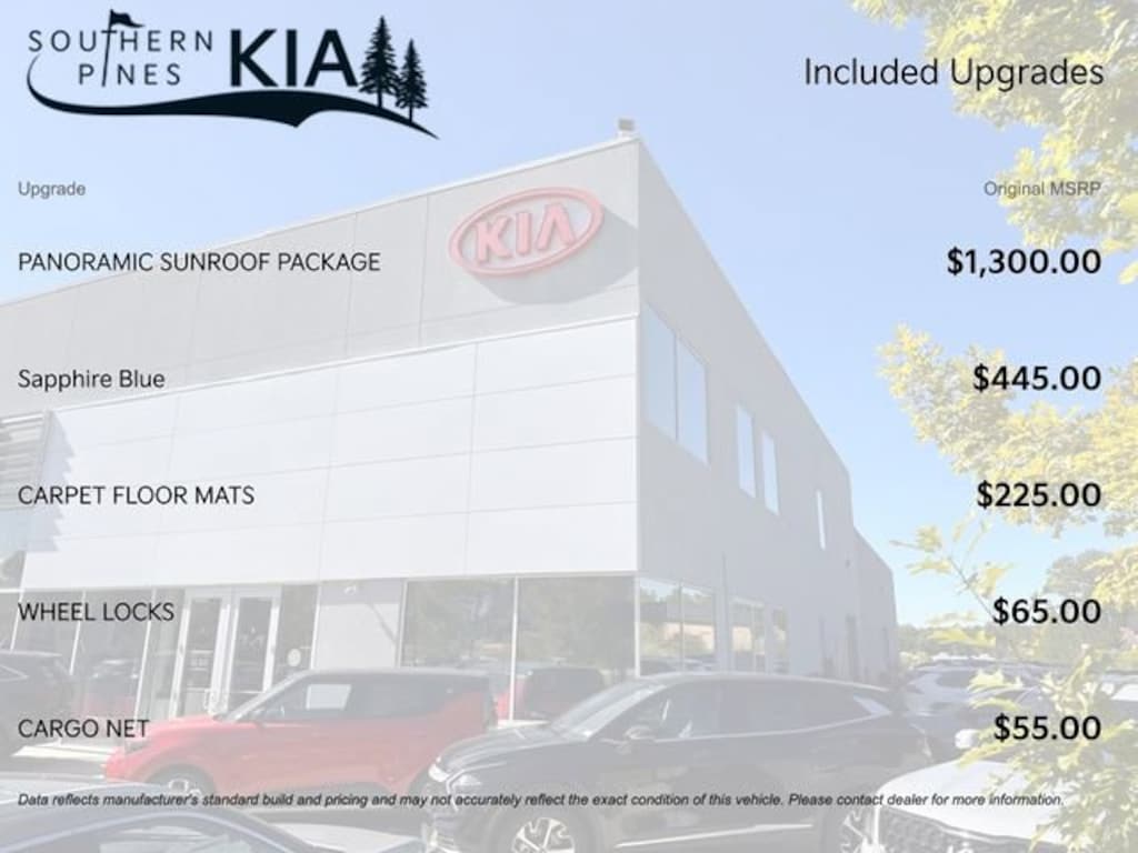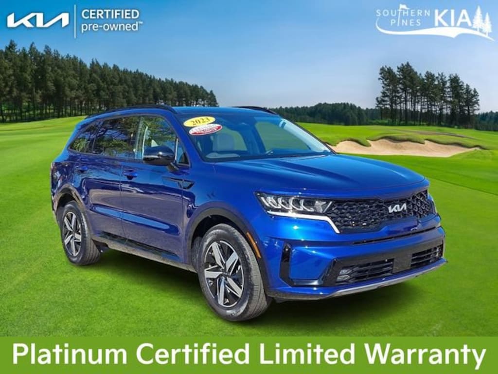 Kia Certified Pre-Owned Certified, 18 Alloy wheels, 3.316 Axle Ratio, 3rd row seats: split-bench, 4-Wheel Disc Brakes, 6 Speakers, ABS brakes, Air Conditioning, AM/FM radio: SiriusXM, Apple CarPlay & Android Auto, Auto High-beam Headlights, Auto-dimming Rear-View mirror, Automatic temperature control, Brake assist, Bumpers: body-color, Cargo Net, Carpet Floor Mats, Delay-off headlights, Driver door bin, Driver vanity mirror, Dual front impact airbags, Dual front side impact airbags, Electronic Stability Control, Emergency communication system, Exterior Parking Camera Rear, Four wheel independent suspension, Front anti-roll bar, Front Bucket Seats, Front Center Armrest, Front dual zone A/C, Front fog lights, Front reading lights, Fully automatic headlights, Heated door mirrors, Heated Front Bucket Seats, Heated front seats, Illuminated entry, Knee airbag, Leather Shift Knob, Leather steering wheel, LED Interior Lighting, Low tire pressure warning, Navigation System, Occupant sensing airbag, Outside temperature display, Overhead airbag, Overhead console, Panic alarm, Panoramic Power Sunroof w/Power Sunshade, Panoramic Sunroof Package, Passenger door bin, Passenger vanity mirror, Power door mirrors, Power driver seat, Power Liftgate, Power passenger seat, Power steering, Power windows, Radio data system, Radio: AM/FM Audio System, Rear air conditioning, Rear anti-roll bar, Rear reading lights, Rear window defroster, Rear window wiper, Remote keyless entry, Roof rack: rails only, Security system, Smart Key w/ Push Button and Remote Start, Speed control, Speed-sensing steering, Split folding rear seat, Spoiler, Steering wheel mounted audio controls, SynTex Artificial Leather Seat Trim, Tachometer, Telescoping steering wheel, Tilt steering wheel, Traction control, Trip computer, Turn signal indicator mirrors, Variably intermittent wipers, Wheel Locks, Wheels: 7.5J x 18 Machine-Finished Alloy.
