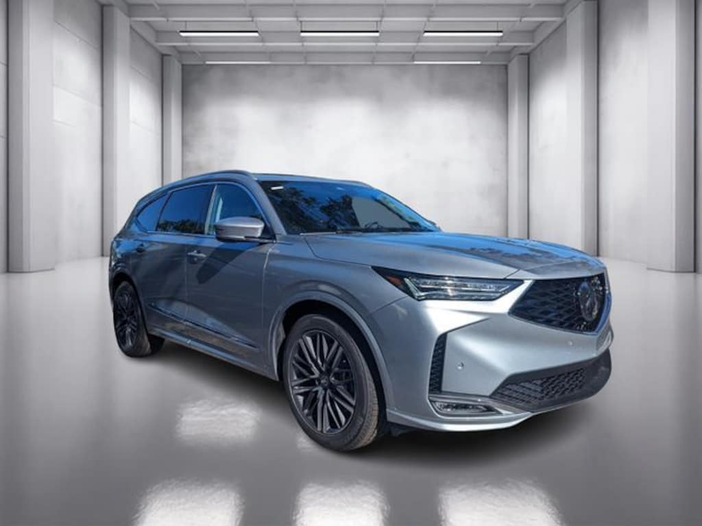 Gray Leather, 19 Speakers, 3rd row seats: split-bench, 4-Wheel Disc Brakes, ABS brakes, Adaptive suspension, Air Conditioning, Alloy wheels, Anti-whiplash front head restraints, Apple CarPlay/Android Auto, Audio memory, Auto High-beam Headlights, Auto tilt-away steering wheel, Auto-dimming Rear-View mirror, Automatic temperature control, Brake assist, Bumpers: body-color, Compass, Curvilinear Qltd Perforated Prem Milano Lthr Seats, Delay-off headlights, Driver door bin, Driver vanity mirror, Dual front impact airbags, Dual front side impact airbags, Electronic Stability Control, Emergency communication system: AcuraLink, Exterior Parking Camera Rear, Four wheel independent suspension, Front anti-roll bar, Front Bucket Seats, Front Center Armrest, Front dual zone A/C, Front fog lights, Front reading lights, Fully automatic headlights, Garage door transmitter: HomeLink, Heads-Up Display, Heated & Ventilated Front Sport Seats, Heated door mirrors, Heated front seats, Heated rear seats, Heated steering wheel, HVAC memory, Illuminated entry, Knee airbag, Lane departure: Lane Keeping Assist System (LKAS) active, Leather steering wheel, Low tire pressure warning, Memory seat, Navigation system: Google built-in (3-Years Unlimited Data Plan for In-Vehicle Apps), Occupant sensing airbag, Outside temperature display, Overhead airbag, Overhead console, Panic alarm, Passenger door bin, Passenger vanity mirror, Power door mirrors, Power driver seat, Power Liftgate, Power moonroof, Power passenger seat, Power steering, Power windows, Premium audio system: Acura/ELS Studio 3D, Radio data system, Radio: Bang & Olufsen Premium Audio System, Rain sensing wipers, Rear air conditioning, Rear anti-roll bar, Rear reading lights, Rear seat center armrest, Rear window defroster, Rear window wiper, Remote keyless entry, Security system, Speed control, Speed-sensing steering, Speed-Sensitive Wipers, Split folding rear seat, Spoiler, Steering wheel memory, Steering wheel mounted audio controls, Tachometer, Telescoping steering wheel, Tilt steering wheel, Traction control, Trip computer, Turn signal indicator mirrors, Variably intermittent wipers, Ventilated front seats, Wheels: 20" x 9J Aluminum Alloy, Gray Leather. 2026 Acura MDX Advance Package SH-AWD Solar Silver Metallic 3.5L V6 SOHC i-VTEC 24V AWD 10-Speed Automatic