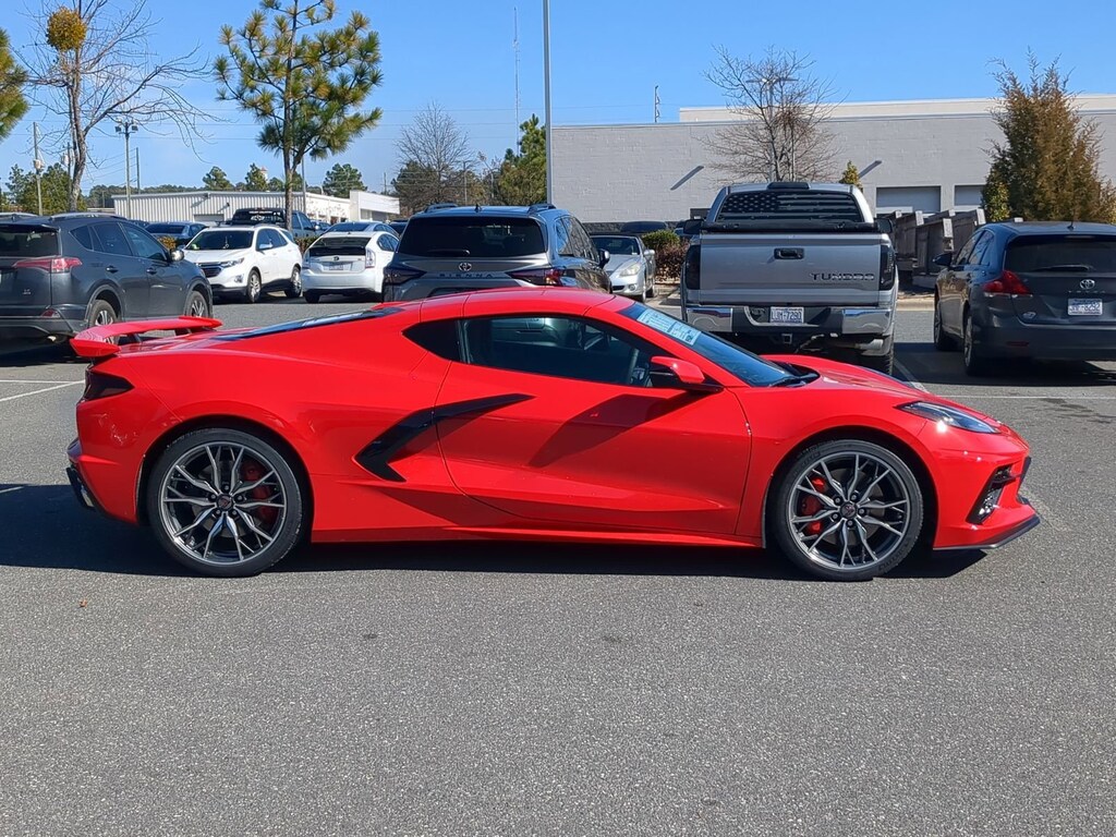 Torch Red 2026 Chevrolet Corvette Stingray 1LT RWD 8-Speed Dual Clutch 6.2L V8 Located right off 15-501 in Southern Pines, 10 Speakers, 4-Wheel Disc Brakes, 8-Way Power Driver Seat Adjuster, 8-Way Power Passenger Seat Adjuster, ABS brakes, Air Conditioning, Alloy wheels, AM/FM radio: SiriusXM, Auto High-beam Headlights, Auto-dimming Rear-View mirror, Automatic temperature control, Brake assist, Bright Red-Painted Calipers, Bumpers: body-color, Compass, Delay-off headlights, Driver door bin, Driver vanity mirror, Dual front impact airbags, Dual front side impact airbags, Electronic Limited-Slip Differential, Electronic Stability Control, Emergency communication system: OnStar and Chevrolet connected services capable, Four wheel independent suspension, Front anti-roll bar, Front Bucket Seats, Front Center Armrest, Front dual zone A/C, Front reading lights, Fully automatic headlights, GT1 Bucket Seats, Heated door mirrors, Heavy-Duty Cooling System, Illuminated entry, Leather Shift Knob, Leather steering wheel, Low tire pressure warning, Mulan Leather Seating Surfaces with Perforated Inserts, Navigation System, Occupant sensing airbag, Outside temperature display, Overhead console, Panic alarm, Passenger door bin, Passenger vanity mirror, Performance Exhaust with Stainless-Steel Tips, Performance Rear Axle Ratio, Power door mirrors, Power driver seat, Power passenger seat, Power steering, Power windows, Premium audio system: Chevrolet Infotainment 3 Plus, Radio data system, Radio: Infotainment System with Google Built-in, Rear anti-roll bar, Rear window defroster, Rear Z51 Spoiler, Remote keyless entry, Speed control, Speed-sensing steering, Sport steering wheel, Steering wheel mounted audio controls, Tachometer, Telescoping steering wheel, Tilt steering wheel, Traction control, Trip computer, Turn signal indicator mirrors, Variably intermittent wipers, Voltmeter, Wheels: 19 x 8.5 Front and 20 x 11 Rear 5-Split-Spoke, Z51 Performance Brakes, Z51 Performance Package, Z51 Performance Suspension.