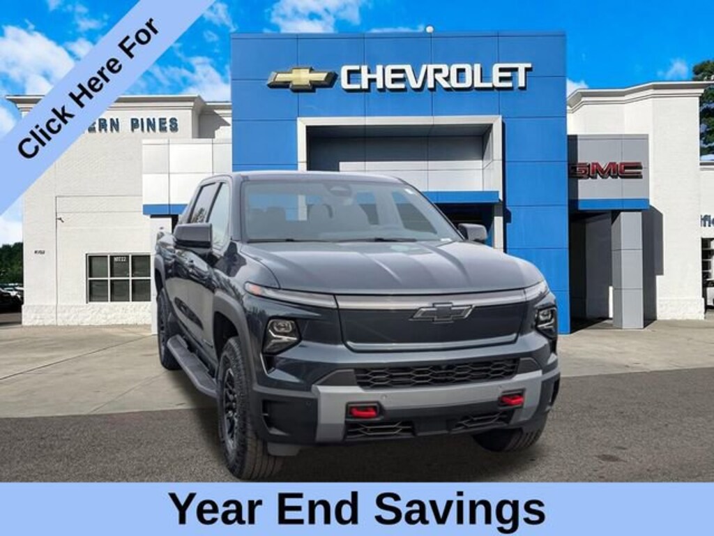 Price includes: $1250 - GM Costco Executive Member Private Offer . Exp. 01/02/2026 $500 - GM Military Cash Allowance Program. Exp. 01/02/2026 Blue Smoke Metallic 2026 Chevrolet Silverado EV Trail Boss AWD 1-Speed Automatic Electric ZEV 625hp Located right off 15-501 in Southern Pines, 19.2 kW High-Voltage Charging Module, 3 Years OnStar One (R9M), 4-Wheel Disc Brakes, 6 Speakers, 6-Speaker Audio System Feature, 7.2 kW AC Power Split Phase Offboarding Power, 8-Way Power Driver Seat Adjuster, ABS brakes, Air Conditioning, Alloy wheels, AM/FM radio: SiriusXM with 360L, Auto High-beam Headlights, Auto-dimming Rear-View mirror, Automatic temperature control, Axle Ratio: TBD, Bed Mounted Power Outlet 240-Volt, Bed Mounted Power Outlets (4) 120-Volt, Bed View Camera, Black Chevytec Spray-On Bedliner, Blind Zone Steering Assist w/Trailering, Bose Premium 7-Speaker Audio System, Brake assist, Cargo Center High Mount Stop Lamp, Comfort & Convenience Package, Delay-off headlights, Driver & Front Passenger Ventilated Seats, Driver 2-Way Power Lumbar Seat Adjuster, Driver 4-Way Power Lumbar Seat Adjuster, Driver Attention Assist, Driver door bin, Driver Memory, Driver vanity mirror, Dual front impact airbags, Dual front side impact airbags, Electronic Stability Control, Emergency communication system: OnStar, Enhanced Automatic Parking Assist, Evotex Seat Trim, Extended Range Battery Pack, Fixed Panoramic Glass Roof, Four wheel independent suspension, Front anti-roll bar, Front Bucket Seats, Front Center Armrest w/Storage, Front dual zone A/C, Front Passenger 4-Way Manual Seat Adjuster, Front Passenger 4-Way Power Lumbar Seat Adjuster, Front Passenger 8-Way Power Seat Adjuster, Front reading lights, Fully automatic headlights, Garage door transmitter, Heated door mirrors, Heated Front Driver & Passenger Seats, Heated front seats, Heated Rear Outboard Passenger Cushion, Heated steering wheel, High Stance Suspension, In-Vehicle Trailering App System, LED Reflective Windshield Collision Alert, Low tire pressure warning, Manual Tailgate Function w/EZ Lift, Multi-Flex Midgate w/Passthrough, Multi-Flex Tailgate, Multicolor 14 Diagonal Head-Up Display, Navigation System, Occupant sensing airbag, Outside Heated Power-Adjustable Mirrors, Outside temperature display, Overhead airbag, Overhead console, Panic alarm, Passenger door bin, Passenger vanity mirror, Power door mirrors, Power driver seat, Power steering, Power Tilt & Telescopic Steering Column w/Memory, Power windows, Preferred Equipment Group 2TR, Premium Package, Radio data system, Radio: 17.7 Diagonal Advanced Color LCD Display, Rain sensing wipers, Rear Camera Mirror, Rear reading lights, Rear Seat w/Center Armrest, Rear step bumper, Rear window defroster, Remote keyless entry, Security system, SiriusXM w/360L Trial Subscription, Speed control, Speed-sensing steering, Split folding rear seat, Sport steering wheel, Steering wheel mounted audio controls, Super Cruise, Super Cruise Package, Tech Package, Telescoping steering wheel, Tilt steering wheel, Traction control, Trailer Camera Views & Provisions, Trailer Integration Package, Trip computer, Variably intermittent wipers, Wheels: 18 x 8.5.