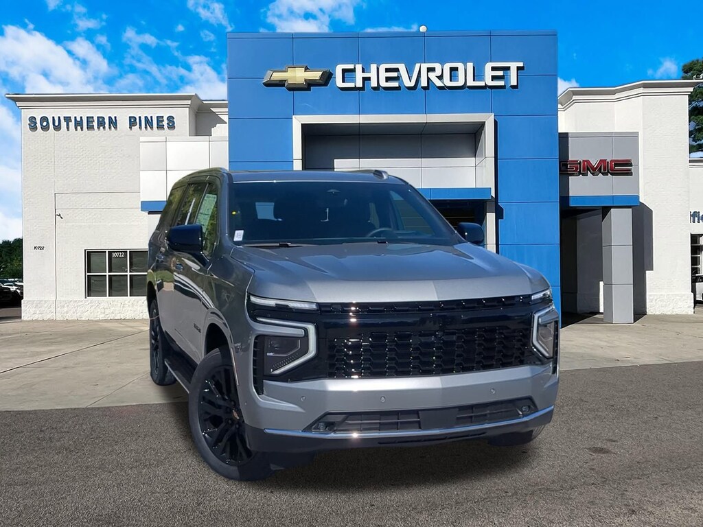 Price includes: $250 - GM Military Appreciation Month Cash Allowance Program. Exp. 12/01/2025 $500 - GM Military Cash Allowance Program. Exp. 01/02/2026 Sterling Gray Metallic 2026 Chevrolet Tahoe Premier RWD 10-Speed Automatic with Overdrive EcoTec3 5.3L V8 Located right off 15-501 in Southern Pines, 10 Speakers, 15 Diagonal Multi-Color Head-Up Display, 1st & 2nd Row Color-Keyed Carpeted Floor Mats, 20 x 9 Polished Aluminum Wheels, 3-Spoke Wrapped Steering Wheel, 3.23 Rear Axle Ratio, 3rd Row 60/40 Power-Folding Split-Bench Seat, 3rd row seats: split-bench, 4-Way Power Driver Lumbar Seat Adjuster, 4-Way Power Front Passenger Lumbar Seat Adjuster, 4-Wheel Disc Brakes, 8-Way Power Driver Seat Adjuster, 8-Way Power Front Passenger Seat Adjuster, ABS brakes, Adaptive suspension, Advanced Security Package, Air Conditioning, Alloy wheels, AM/FM radio: SiriusXM with 360L, Apple CarPlay/Android Auto, Auto High-beam Headlights, Auto-dimming door mirrors, Auto-Dimming Inside Rear-View Mirror, Auto-dimming Rear-View mirror, Auto-leveling suspension, Automatic temperature control, AutoSense Hands-Free Power Liftgate, Black Grille w/Black Bowtie Emblem (LPO), Black Mirror Caps (LPO), Black Name Plates (LPO), Bose 10-Speaker Centerpoint Surround Audio Sys Ft, Brake assist, Bright Front & Rear Door Sill Plates, Bumpers: body-color, Chrome Door Handles w/Body-Color Strip, Chrome Mirror Caps, Color-Keyed Carpeting Floor Covering, Compass, Delay-off headlights, Driver & Front Passenger Heated & Ventilated Seats, Driver door bin, Driver vanity mirror, Dual Exhaust System, Dual front impact airbags, Dual front side impact airbags, Dual-Pane Power Panoramic Sunroof, Electronic Stability Control, Emergency communication system: OnStar and Chevrolet connected services capable, Exterior Parking Camera Rear, Floor Console, Four wheel independent suspension, Front anti-roll bar, Front Bucket Seats, Front Center Armrest, Front dual zone A/C, Front fog lights, Front LED Fog Lamps, Front reading lights, Frontal Driver & Outboard Passenger Airbags, Fully automatic headlights, Garage door transmitter, Glass Breakage Sensor, Heated 2nd Row Outboard Seats, Heated door mirrors, Heated Driver & Front Passenger Seats, Heated front seats, Heated rear seats, Heated Steering Wheel, Heated steering wheel, Illuminated entry, Inside Rearview Auto-Dimming Rear Camera Mirror, Interior Camera, Key Card, LED Headlamps w/LED Daytime Running Lamps, LED Tail Lamps, Low tire pressure warning, Magnetic Ride Control Suspension, Memory seat, Memory Settings, Navigation system: Google built-in compatibility (select service plan required, terms and limitations apply), Occupant sensing airbag, Outside Heated Power-Adjustable Mirrors, Outside temperature display, Overhead airbag, Overhead console, Panic alarm, Passenger door bin, Passenger vanity mirror, Perforated Leather Seat Trim, Power door mirrors, Power driver seat, Power Liftgate, Power passenger seat, Power Release 2nd Row Bucket Seats, Power steering, Power Tilt & Telescopic Steering Column, Power windows, Preferred Equipment Group 1LZ, Premium audio system: Chevrolet Infotainment 3 Premium, Premium Dark Essentials Package (LPO), Radio data system, Radio: 17.7 Diagonal Advanced Color LCD Display, Rain sensing wipers, Rear air conditioning, Rear anti-roll bar, Rear Power Liftgate, Rear reading lights, Rear Seat Media System, Rear window defroster, Rear window wiper, Remote keyless entry, Remote Start, Security system, SiriusXM w/360L Trial Subscription, Speed control, Speed-sensing steering, Split folding rear seat, Spoiler, Steering wheel memory, Steering wheel mounted audio controls, Tachometer, Technology & Entertainment Package, Technology Package, Telescoping steering wheel, Theft-Deterrent Alarm System, Tilt steering wheel, Traction control, Trip computer, Turn signal indicator mirrors, Universal Home Remote, Variably intermittent wipers, Vehicle Inclination Sensor, Vehicle Interior Movement Sensor, Ventilated f