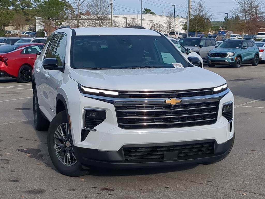 Price includes: $1500 - Chevrolet Consumer Cash Program. Exp. 01/02/2026 $1500 - Chevrolet GM Financial APR & NCC Consumer Cash Program: $1500 discount and 6.79% APR for 36 months. $30.78 per $1000 financed. Available to well qualified buyers who finance through GM Financial. XGQ, NCC. Exp. 01/02/2026 $500 - GM Military Cash Allowance Program. Exp. 01/02/2026 Summit White 2026 Chevrolet Traverse LT 2LT AWD 8-Speed Automatic 2.5L DOHC Located right off 15-501 in Southern Pines, 3 Years SiriusXM, 3rd row seats: split-bench, 4-Way Manual Front Passenger Seat Adjuster, 4-Wheel Disc Brakes, 6 Speakers, 6-Speaker Audio System Feature, 8-Way Power Driver Seat Adjuster, ABS brakes, Air Conditioning, Alloy wheels, AM/FM radio: SiriusXM with 360L, Apple CarPlay/Android Auto, Auto High-beam Headlights, Automatic temperature control, Brake assist, Bumpers: body-color, Child-Seat-Sensing Airbag, Compass, Delay-off headlights, Driver Confidence Package, Driver door bin, Driver vanity mirror, Dual front impact airbags, Dual front side impact airbags, Electronic Stability Control, Emergency communication system: OnStar, Four wheel independent suspension, Front anti-roll bar, Front Bucket Seats, Front Center Armrest, Front dual zone A/C, Front reading lights, Fully automatic headlights, HD Surround Vision, Heated door mirrors, Heated Driver & Front Passenger Seats, Heated front seats, Heated steering wheel, Illuminated entry, Key Card, Low tire pressure warning, Navigation System, Occupant sensing airbag, Outside temperature display, Overhead airbag, Overhead console, Panic alarm, Passenger door bin, Passenger vanity mirror, Power door mirrors, Power driver seat, Power Liftgate, Power Outlet, Power steering, Power windows, Premium Cloth Seat Trim, Radio data system, Radio: Audio System w/17.7 Diagonal Display, Rear air conditioning, Rear anti-roll bar, Rear Camera Mirror, Rear Pedestrian Alert, Rear reading lights, Rear window defroster, Rear window wiper, Remote keyless entry, Security system, SiriusXM w/360L Trial Subscription, Speed control, Speed-sensing steering, Spoiler, Steering wheel mounted audio controls, Tachometer, Telescoping steering wheel, Tilt steering wheel, Traction control, Traffic Sign Recognition, Trip computer, Turn signal indicator mirrors, Variably intermittent wipers, Voltmeter, Wheels: 18 Grazen Metallic Machined-Face Aluminum.