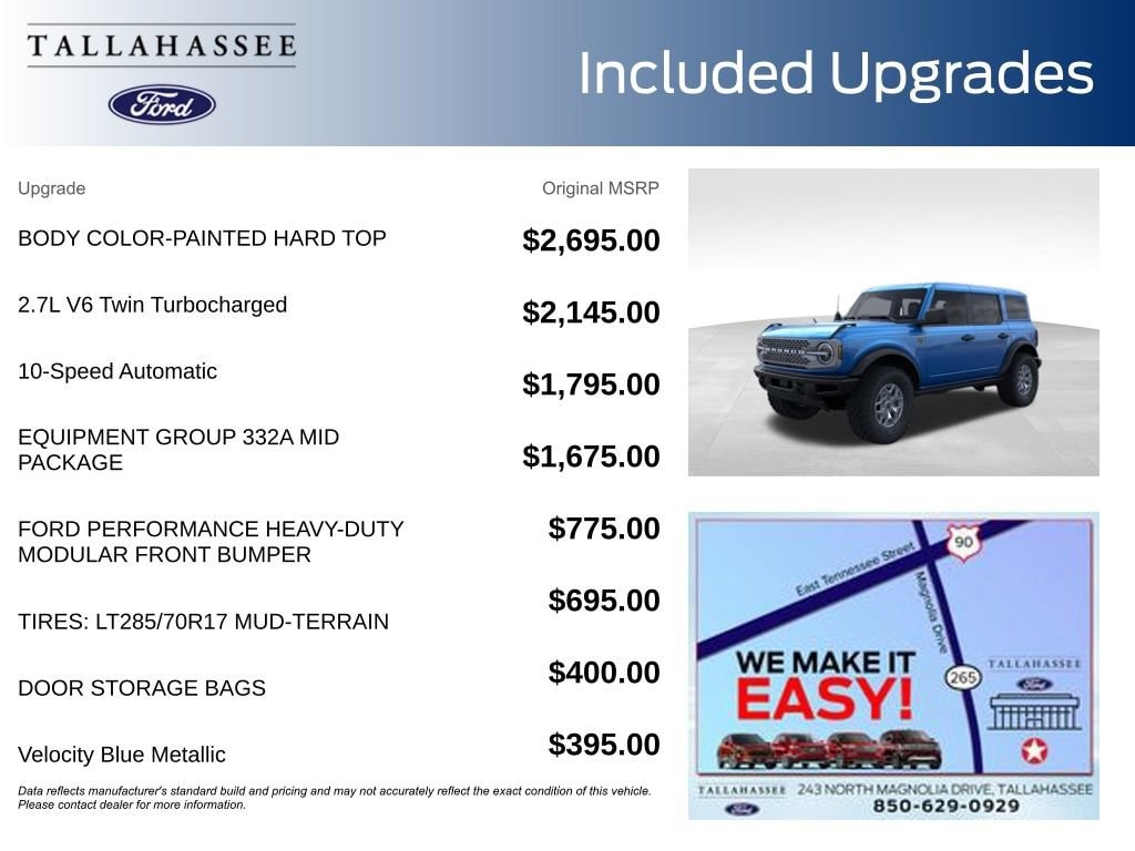 Whether you're tackling the trails or navigating the city, the 2025 Ford Bronco Badlands is the perfect vehicle to take you there. With its striking Velocity Blue Metallic exterior and a host of premium features, this SUV is sure to turn heads wherever you go.