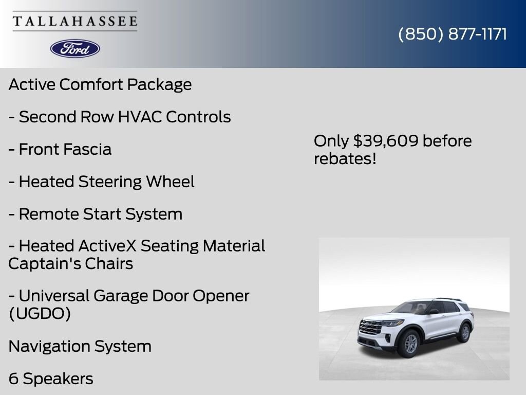 Don't miss your chance to own this exceptional 2025 Ford Explorer Active. Contact us now to schedule a test drive and experience the difference for yourself. We're here to make your dream of owning the perfect SUV a reality. Price includes: $1500 - Bonus Customer Cash. Exp. 01/05/2026