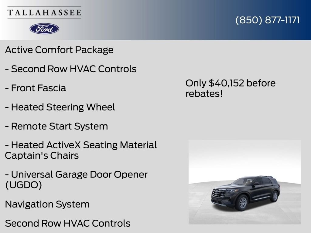 Experience the difference with the 2025 Ford Explorer Active. Visit our showroom today and let us help you discover the perfect vehicle to elevate your driving experience. Price includes: $1500 - Bonus Customer Cash. Exp. 01/05/2026