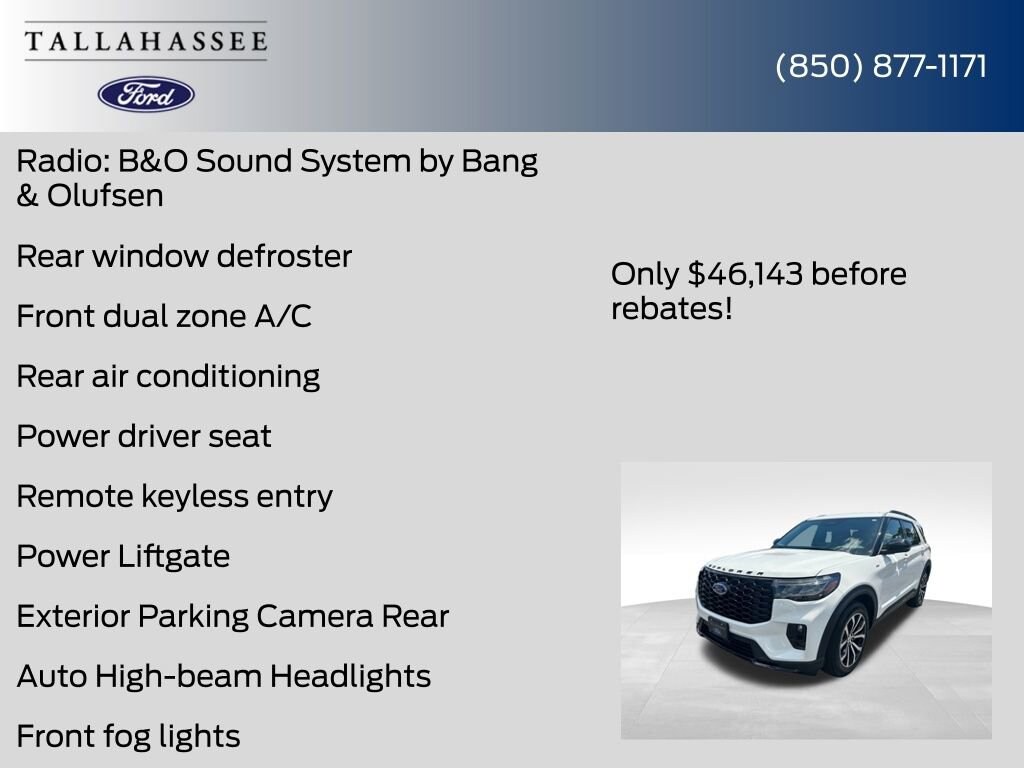 As you take the wheel of this exceptional SUV, you'll be captivated by the seamless blend of power, technology, and style. The 2025 Ford Explorer ST-Line is more than just a vehicle it's a gateway to an unforgettable driving experience. Discover the difference for yourself and schedule a test drive today. This remarkable SUV is waiting to elevate your journey. Price includes: $1500 - Bonus Customer Cash. Exp. 01/05/2026