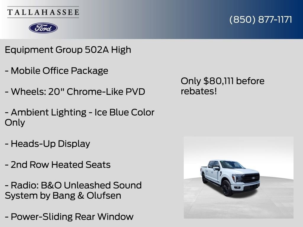Discover the perfect blend of power, technology, and comfort in this 2025 Ford F-150 Lariat. With its striking white exterior and a wealth of premium features, this truck is designed to exceed your expectations. Imagine navigating the open road with the confidence of a Heads-Up Display, the convenience of Wireless Charging, and the indulgence of ventilated front seats.