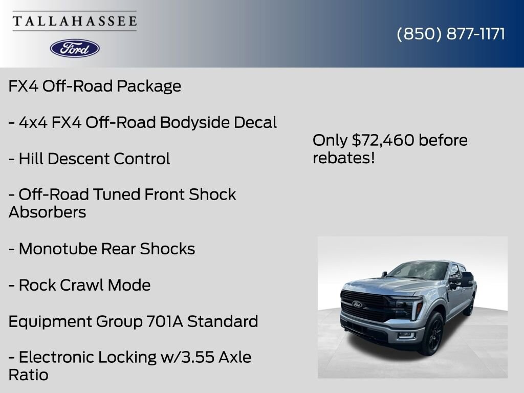 Experience the ultimate in off-road capability with the FX4 Off-Road Package, which includes rock crawl mode, off-road-tuned shock absorbers, and a tough bed spray-in bedliner. Whether you're tackling the trails or hauling heavy loads, this truck is built to handle it all with ease.