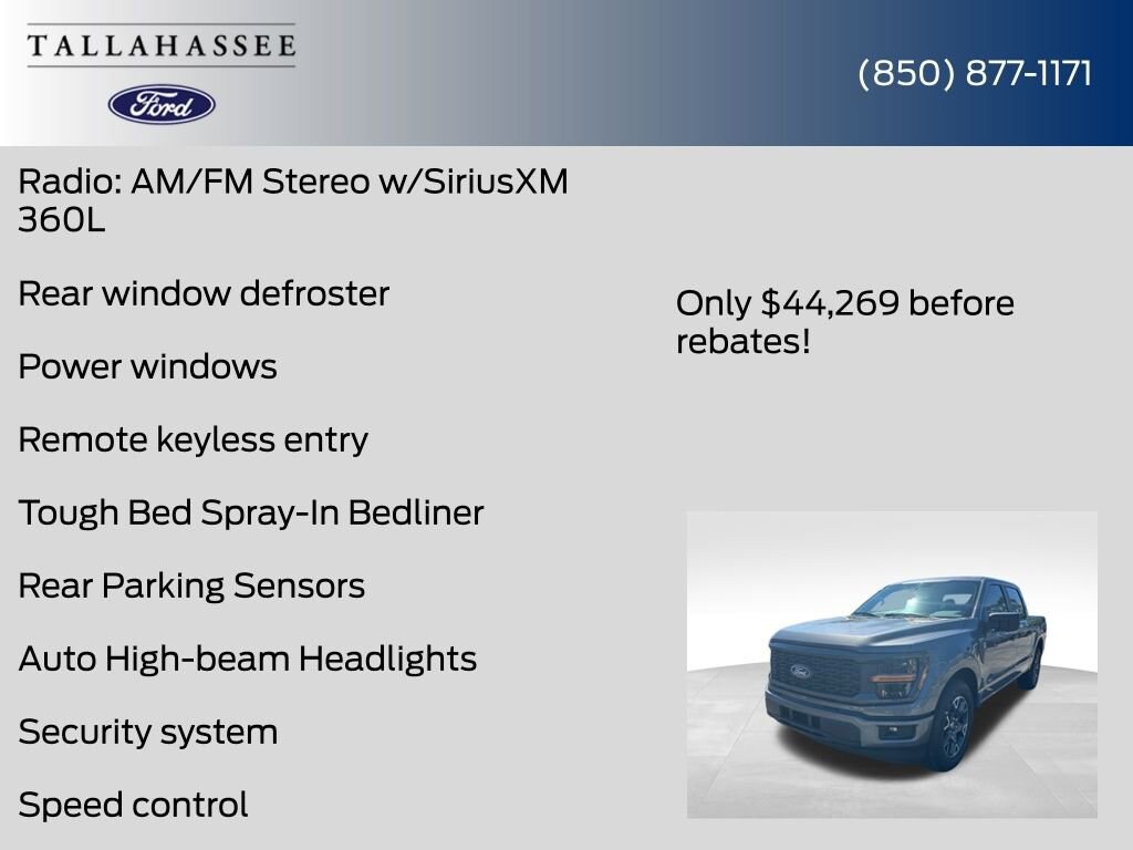 Experience the power and performance of the 2025 Ford F-150 STX for yourself. Visit our showroom today and let our knowledgeable sales team guide you through all the features and capabilities of this remarkable pickup. Don't settle for less discover the true meaning of Built Ford Tough with the F-150 STX. Price includes: $1000 - Bonus Customer Cash. Exp. 01/05/2026