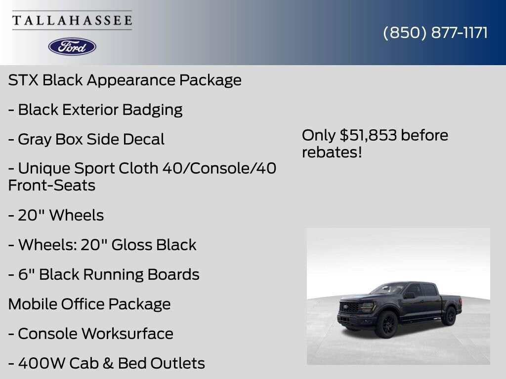 Whether you're a seasoned contractor, an adventurous outdoor enthusiast, or simply someone who demands the best from their vehicle, the 2025 Ford F-150 STX is the perfect choice. Experience the power, versatility, and uncompromising quality that have made the F-150 a legend in the truck world. Visit our showroom today and let us help you discover the true potential of this remarkable vehicle. Price includes: $1000 - Bonus Customer Cash. Exp. 01/05/2026