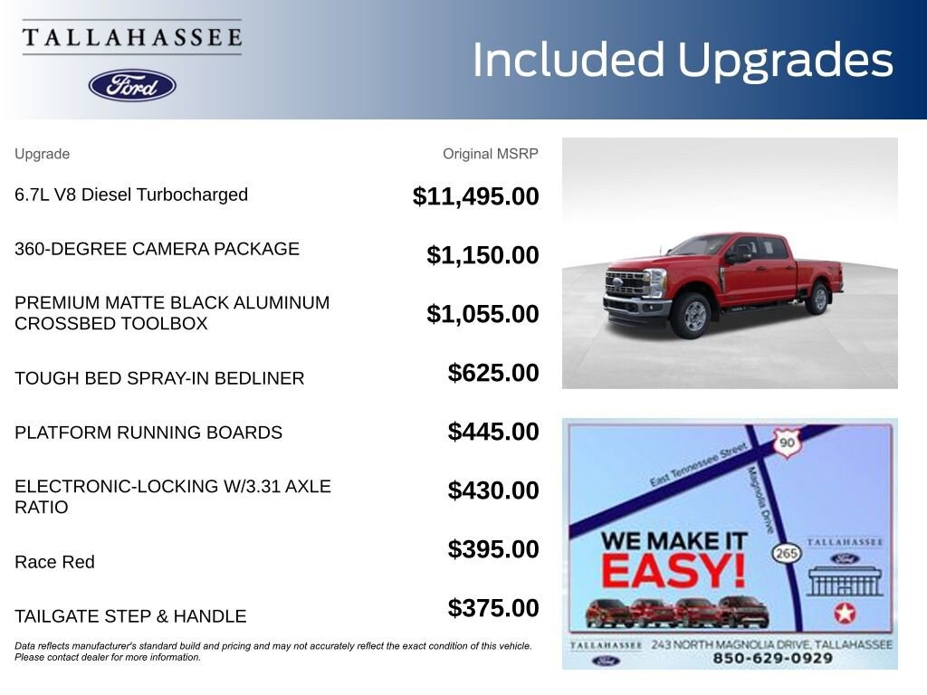 Exterior highlights include the striking Race Red paint, LED center high-mounted stop lamp camera, and the PowerScope trailer tow mirrors with heat, providing both style and functionality. The front and rear wheel well liners, along with the front and rear splash guards, protect your investment from the elements.