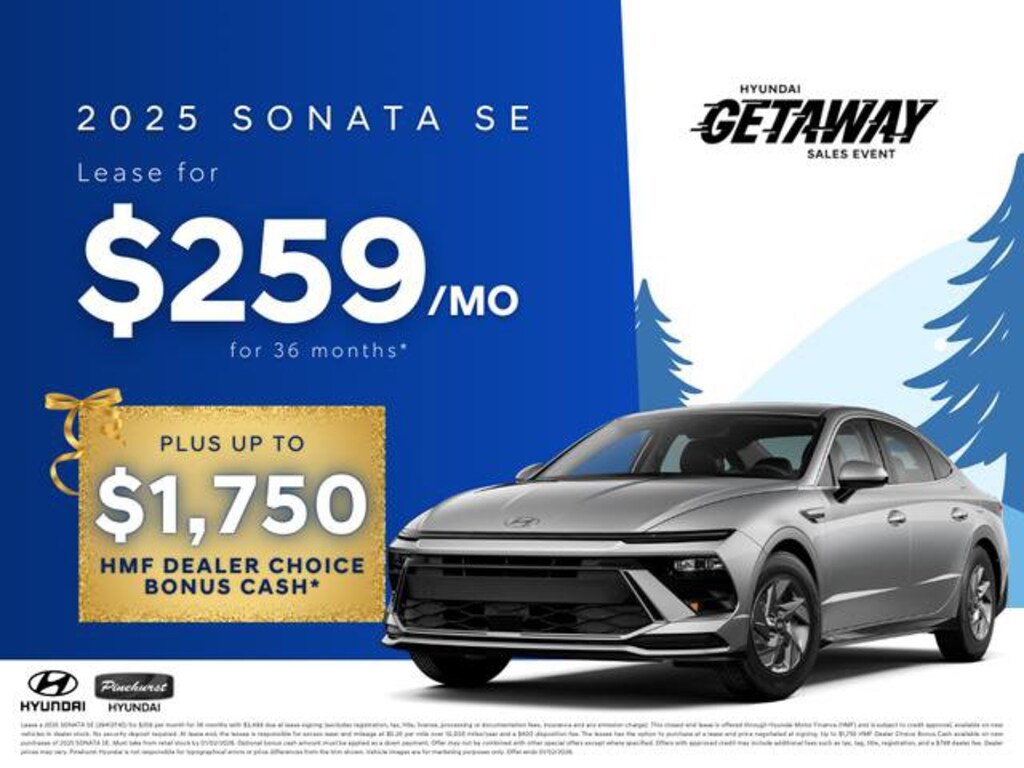 At Pinehurst Hyundai, we don't just sell the 2025 Sonata SEL, we elevate the entire experience. As a proud winner of the Hyundai Board of Excellence Award, our dealership consistently delivers what others promise but fail to execute: transparent communication, a no-pressure sales process, and a dedication to long-term satisfaction. Our expert service department is known across the region for its speed, precision, and integrity, making your ownership experience seamless from day one. We know that todays buyer is well-informed and expects more, which is why we've built a reputation across North Carolina as the smart choice for those who don't settle for average.