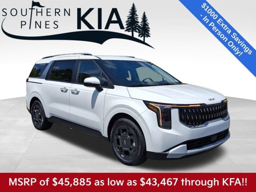 Snow White Pearl 2026 Kia Carnival Hybrid EX 1.6L I4 DGI Hybrid Turbocharged DOHC 16V LEV3-SULEV30 6-Speed Automatic FWD Price includes: $1000 - KFA Dealer Choice Program: $1000 discount and 5.25% APR for 36 months. $30.08 per $1000 financed. Available to well qualified buyers who finance through Kia Finance America. 506. Exp. 01/02/2026 $500 - Sticker Sales Event Retail Bonus Cash. Exp. 01/02/2026