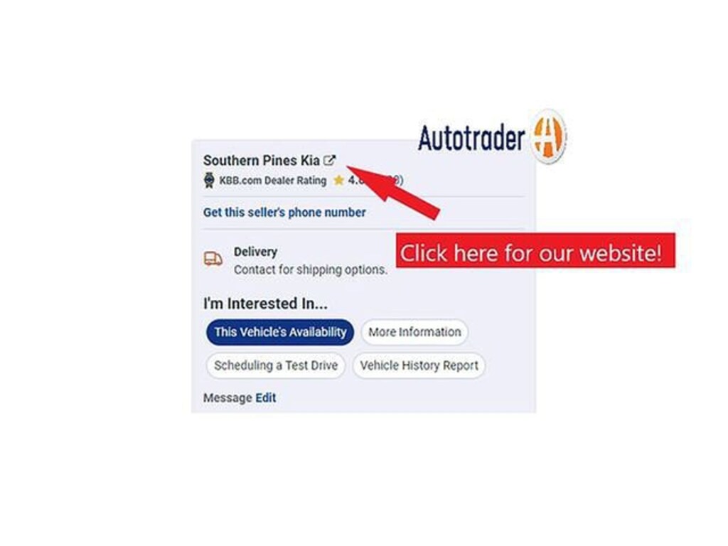 Check out all these options: GT-Line Premium Package (Active Sound Design, Bose Premium Audio, LED Interior Lighting, Panoramic Sunroof, and Wheels: 18 x 7.5J Unique Gloss Black Alloy), GT-Line Red Interior Package (SynTex Seat Trim), 18 Alloy wheels, 4-Wheel Disc Brakes, 6 Speakers, ABS brakes, Air Conditioning, AM/FM radio: SiriusXM, Auto High-beam Headlights, Automatic temperature control, Brake assist, Bumpers: body-color, Carpeted Floor Mats, Delay-off headlights, Driver door bin, Driver vanity mirror, Dual front impact airbags, Dual front side impact airbags, Electronic Stability Control, Emergency communication system: Kia Connect (includes 1 year free trial), Four wheel independent suspension, Front anti-roll bar, Front Bucket Seats, Front Center Armrest, Front dual zone A/C, Front fog lights, Front reading lights, Fully automatic headlights, Heated door mirrors, Heated Front Bucket Seats, Heated front seats, Heated steering wheel, Illuminated entry, Knee airbag, Leather Shift Knob, Leather steering wheel, Low tire pressure warning, Navigation System, Occupant sensing airbag, Outside temperature display, Overhead airbag, Overhead console, Panic alarm, Passenger door bin, Passenger vanity mirror, Power door mirrors, Power driver seat, Power steering, Power windows, Radio data system, Radio: AM/FM Audio System, Rear anti-roll bar, Rear seat center armrest, Rear side impact airbag, Rear window defroster, Remote keyless entry, Security system, Speed control, Speed-sensing steering, Split folding rear seat, Sport steering wheel, Steering wheel mounted audio controls, Tachometer, Telescoping steering wheel, Tilt steering wheel, Traction control, Trip computer, Turn signal indicator mirrors, Variably intermittent wipers, and Wheels: 18 x 7.5J Gloss Black Machined Finish Alloy. Southern Pines KIA is a family-owned dealership that has been serving the community for over 50 years. We offer a wide selection of new and used cars, SUVs, and trucks, as well as financing and leasing options. Visit us today to see why buying a car from us is worth it! ValueShield is a simple and affordable way to protect your vehicle's value from diminished value. Get up to $10,000 when you trade in or sell your vehicle, even if it's been in an accident. Price includes: $1000 - KFA Dealer Choice Program: $1000 discount and 5.50% APR for 36 months. $30.20 per $1000 financed. Available to well qualified buyers who finance through Kia Finance America. 506. Exp. 11/03/2025 $500 - Military Program. Exp. 11/03/2025