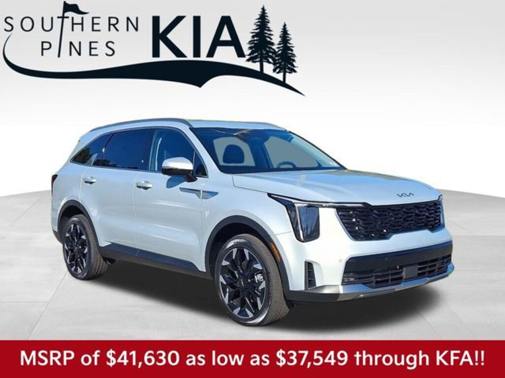 Check out all these options: AWD, 18 Alloy wheels, 3rd row seats: split-bench, 4-Wheel Disc Brakes, 6 Speakers, ABS brakes, Air Conditioning, All Weather Floor Mats, AM/FM radio: SiriusXM, Apple CarPlay & Android Auto, Auto High-beam Headlights, Auto-dimming Rear-View mirror, Automatic temperature control, Brake assist, Bumpers: body-color, Cargo Tray, Delay-off headlights, Driver door bin, Driver vanity mirror, Dual front impact airbags, Dual front side impact airbags, Electronic Stability Control, Emergency communication system: 911 Connect, Exterior Parking Camera Rear, Four wheel independent suspension, Front anti-roll bar, Front Bucket Seats, Front Center Armrest, Front dual zone A/C, Front fog lights, Front reading lights, Fully automatic headlights, Heated door mirrors, Heated Front Bucket Seats, Heated front seats, Illuminated entry, Knee airbag, Leather Shift Knob, Leather steering wheel, Low tire pressure warning, Navigation System, Occupant sensing airbag, Outside temperature display, Overhead airbag, Overhead console, Panic alarm, Passenger door bin, Passenger vanity mirror, Power door mirrors, Power driver seat, Power Liftgate, Power passenger seat, Power steering, Power windows, Radio data system, Radio: AM/FM Standard Sound System, Rear anti-roll bar, Rear reading lights, Rear seat center armrest, Rear side impact airbag, Rear window defroster, Rear window wiper, Remote keyless entry, Security system, Speed control, Speed-sensing steering, Split folding rear seat, Spoiler, Steering wheel mounted audio controls, SynTex Artificial Leather Seat Trim, Tachometer, Telescoping steering wheel, Tilt steering wheel, Traction control, Trip computer, Turn signal indicator mirrors, Variably intermittent wipers, and Wheels: 20 Machine-Finished Gloss Black Alloy. Southern Pines KIA is a family-owned dealership that has been serving the community for over 50 years. We offer a wide selection of new and used cars, SUVs, and trucks, as well as financing and leasing options. Visit us today to see why buying a car from us is worth it! ValueShield is a simple and affordable way to protect your vehicle's value from diminished value. Get up to $10,000 when you trade in or sell your vehicle, even if it's been in an accident. Price includes: $2000 - KFA Dealer Choice Program: $2000 discount and 5.50% APR for 36 months. $30.20 per $1000 financed. Available to well qualified buyers who finance through Kia Finance America. 506. Exp. 11/03/2025