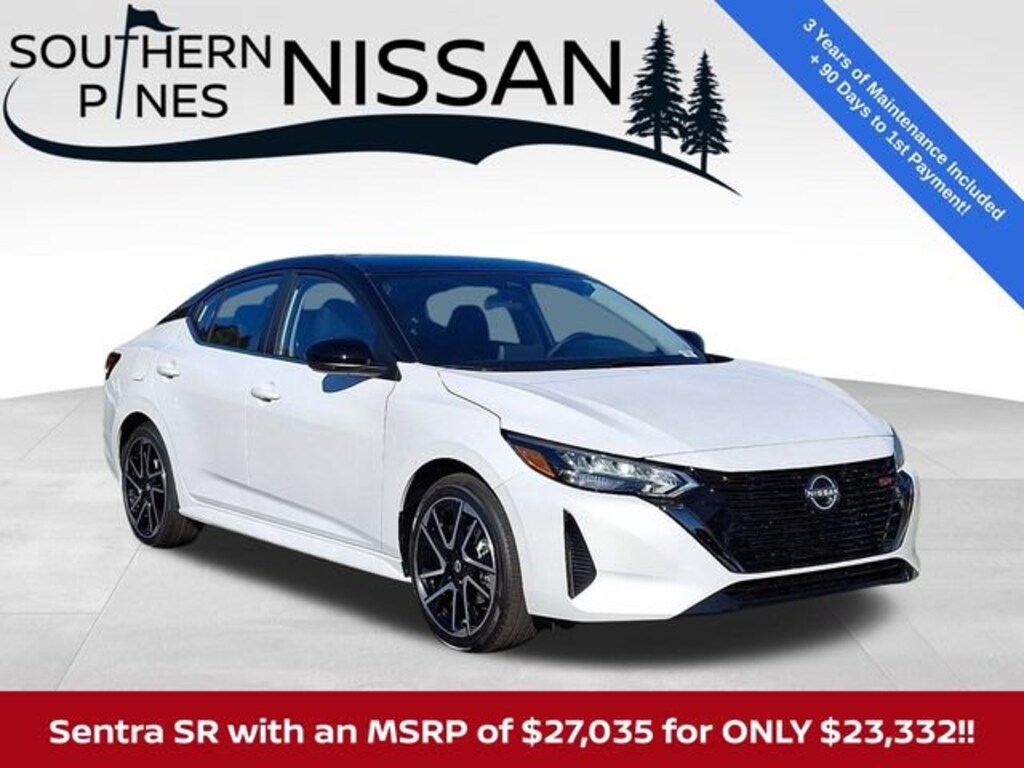 Aspen White/Super Black 2025 Nissan Sentra SR 2.0L I4 DOHC CVT with Xtronic FWD Price includes: $500 - Nissan MY25 Sentra Bonus Cash. Exp. 01/05/2026 $500 - Nissan SER MY25 Sentra (SV - SR) Bonus Cash - December. Exp. 01/05/2026