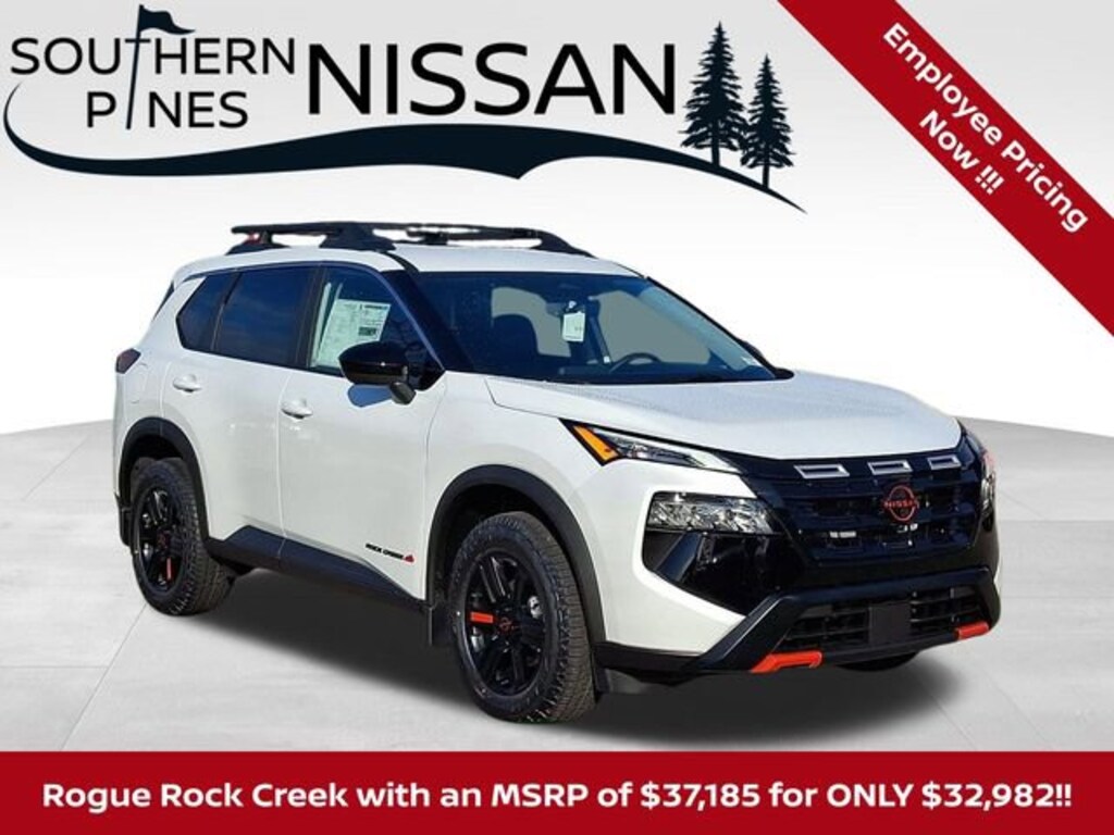 Everest White Pearl Tricoat 2026 Nissan Rogue Rock Creek 1.5L DOHC CVT with Xtronic AWD Price includes: $3500 - Nissan Customer Cash. Exp. 03/02/2026