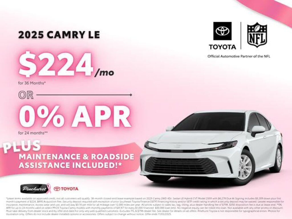 At Pinehurst Toyota, our reputation speaks for itself. With 10 Toyota Presidents Awards earned, we've consistently proven our commitment to excellence in sales and service. That means when you take ownership of your Camry SE here, you're not just buying a vehicle, youre gaining access to a service department that understands the needs of discerning drivers across North Carolina. Backed by decades of trust and a relentless standard of care, Pinehurst Toyota is where refined vehicles meet executive-level service.