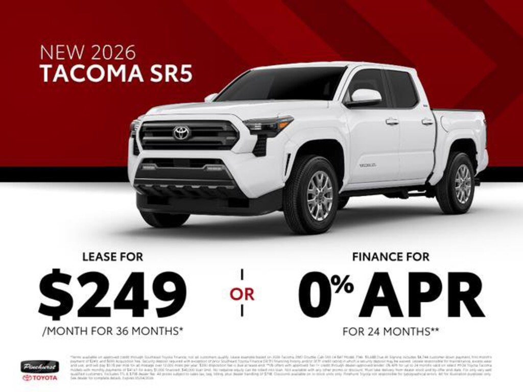 Step into the 2026 Toyota Tacoma SR5, and discover a truck that seamlessly blends rugged capability with refined comfort. Experience the perfect balance of performance and practicality, all for an MSRP of $45,796. Visit our showroom today and let us demonstrate why the Tacoma SR5 is the perfect companion for your next adventure.