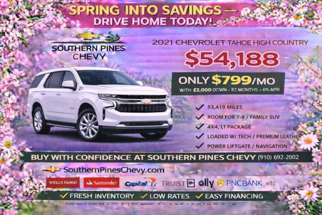 At Southern Pines Chevrolet, we combine transparent market based pricing with a true hometown buying experience so you can shop confidently and drive home knowing you made the right decision.
