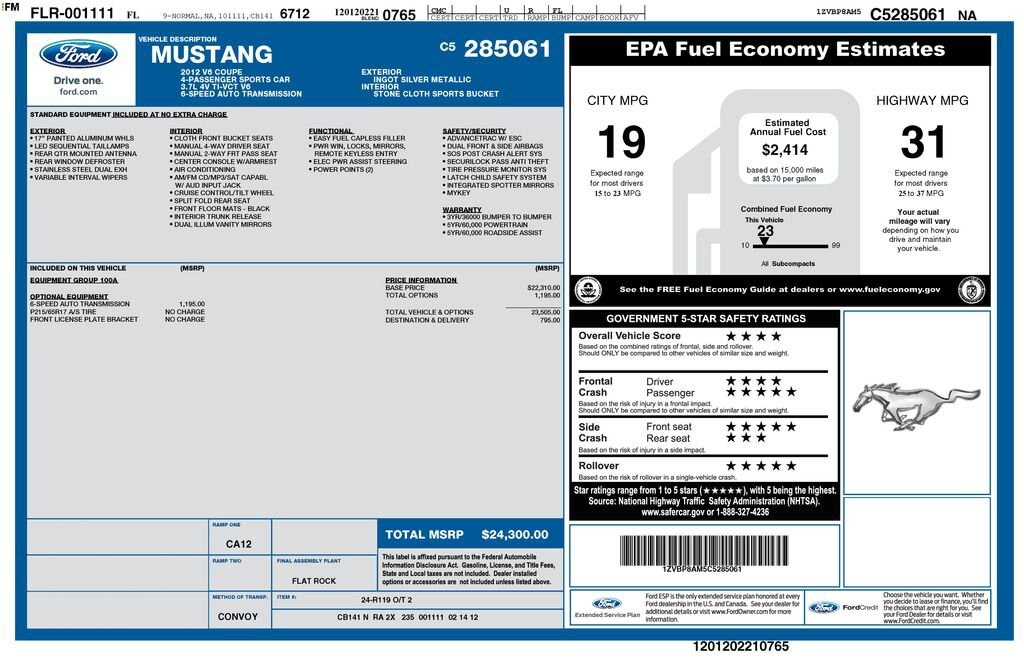 Beneath the hood, this Mustang V6 is powered by a 3.7L V6 Ti-VCT 24V engine, delivering an impressive balance of performance and efficiency. With 19 MPG in the city and 29 MPG on the highway, you'll enjoy the open road without sacrificing fuel economy.