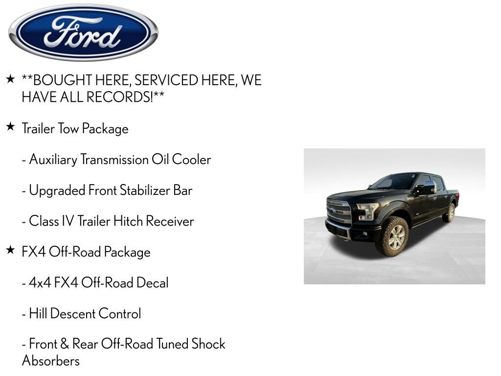 Clean CARFAX. **BOUGHT HERE, SERVICED HERE, WE HAVE ALL RECORDS!**, 4WD, 20 Polished Aluminum Wheels, 4x4 FX4 Off-Road Decal, Auxiliary Transmission Oil Cooler, Class IV Trailer Hitch Receiver, Electronic Locking w/3.31 Axle Ratio, Equipment Group 700A, Extended Range 36 Gallon Fuel Tank, Front & Rear Off-Road Tuned Shock Absorbers, FX4 Off-Road Package, Hill Descent Control, Memory seat, Pedal memory, Power driver seat, Trailer Tow Package, Twin Panel Moonroof, Upgraded Front Stabilizer Bar, Voice-Activated Navigation.