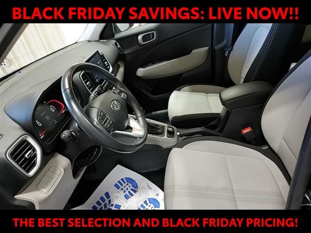 Beyond these standout features, the Venue SEL offers a well-appointed interior with premium touches, including a leather-wrapped steering wheel and shift knob, as well as a convenient center armrest. The split-folding rear seats provide versatile cargo space, while the 6.5-inch touchscreen display with AM/FM/HD radio and Apple CarPlay/Android Auto integration keeps you connected and entertained on the go.