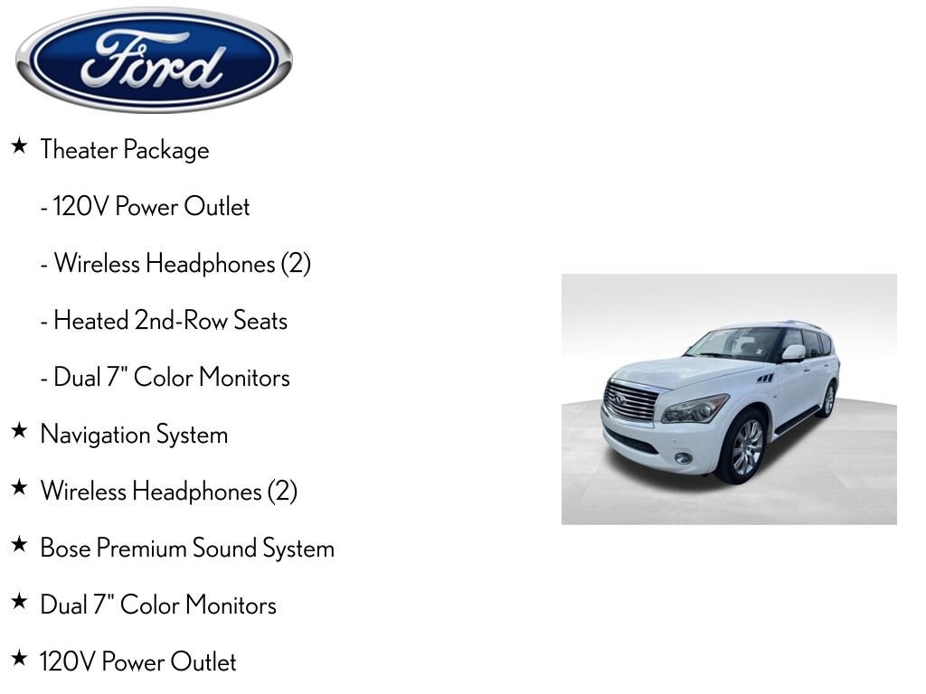 Experience the pinnacle of luxury and capability in this well-equipped 2014 INFINITI QX80 Base. Visit our showroom today to take this impressive SUV for a test drive and discover why it's the perfect addition to your lifestyle.