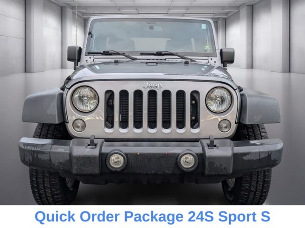 1-Yr SiriusXM Radio Service, 16" x 7.0" Luxury Styled Steel Wheels, 17" x 7.5" Aluminum Wheels, 3.21 Rear Axle Ratio, 4-Wheel Disc Brakes, 8 Speakers, ABS brakes, Air Conditioning, AM/FM radio, Audio Jack Input for Mobile Devices, Auto-Dimming Mirror w/Reading Lamp, Brake assist, CD player, Chrome/Leather Wrapped Shift Knob, Cloth Seats w/Adjustable Head Restraints, Compass, Connectivity Group, Deep Tint Sunscreen Windows, Driver door bin, Driver Height Adjuster Seat, Driver vanity mirror, Dual front impact airbags, Electronic Stability Control, Front 1-Touch Down Power Windows, Front anti-roll bar, Front Bucket Seats, Front Center Armrest w/Storage, Front fog lights, Integrated roll-over protection, Leather Wrapped Steering Wheel, Low tire pressure warning, Normal Duty Suspension, Occupant sensing airbag, Outside temperature display, Passenger door bin, Passenger vanity mirror, Power Convenience Group, Power Heated Mirrors, Power Locks, Power steering, Premium Black Sunrider Soft Top, Quick Order Package 24S Sport S, R1234YF A/C Refrigerant, Radio: 130, Rear anti-roll bar, Remote Keyless Entry, Security Alarm, Speed control, Split folding rear seat, Steering wheel mounted audio controls, Sunrider Soft Top, Tachometer, Tilt steering wheel, Tire Pressure Monitoring Display, Traction control, Trip computer, Tubular Side Steps, Uconnect Voice Command w/Bluetooth, Variably intermittent wipers, Vehicle Information Center.