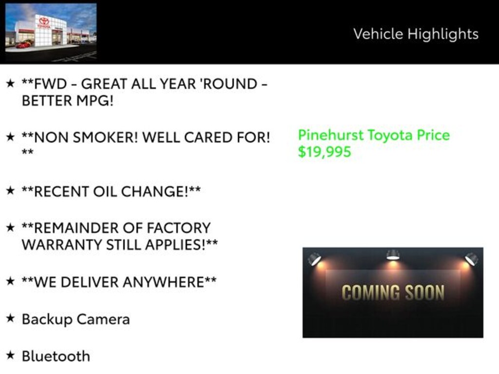 This well-cared-for Corolla LE is the perfect blend of reliability, efficiency, and modern amenities. With its recent oil change and the remainder of the factory warranty still in effect, this vehicle is ready to provide years of dependable service.